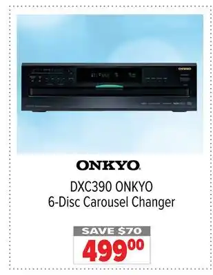 The DXC390 ONKYO 6-Disc Carousel Changer is available this week at 2001 Audio Video with a valuable discount. On this page, you will find details about the current promotional price, the promotion terms, and any special discounts. You can also explore other related deals and promotions for DXC390 ONKYO 6-Disc Carousel Changer to make sure you get the best value.
