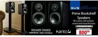 This PRIMESPBK Prime Bookshelf Speakers is now on sale at 2001 Audio Video. Check the current selection filled with great deals and discounts. Purchase PRIMESPBK Prime Bookshelf Speakers online via 2001 Audio Video website or get it at the best available price in person. Flyerdeals.ca gathers the best PRIMESPBK Prime Bookshelf Speakers promotions for you. Click on the bell icon to receive a free notification when this product is on sale again.PRIMESPBK Prime Bookshelf Speakers promotions for next week