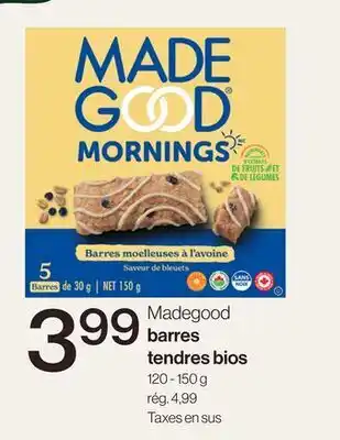 This promotion is available in various stores, view all products to get the cheapest Barres tendres bios. If you'd like to find out whether this product has a bigger discount in another store, check the category 'Grocery'. You may also find these offers interesting: Barres tendres Selection, Barres tendres ValNature & BARRES TENDRES QUAKER | QUAKER CHEWY BARS.