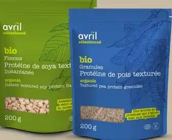 Current Flocons ou granules de protéine de soya ou de pois texturée bios deal at Avril from 1-01 until 7-01.