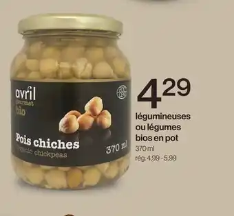 Avril offers a wide collection of products, besides the légumineuses ou légumes bios en pot. Keep an eye on the weekly flyer to find the best offers and promotions. Besides légumineuses ou légumes bios en pot, you can also find the following offers: LÉGUMINEUSES CEDAR | CEDAR LEGUMES, LÉGUMINEUSES CEDAR | CEDAR LEGUMES & LÉGUMINEUSES CEDAR | CEDAR LEGUMES.
