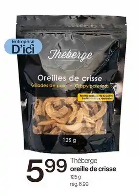 This promotion is available in various stores, view all products to get the cheapest Oreille de crisse. If you'd like to find out whether this product has a bigger discount in another store, check the category 'Grocery'. You may also find these offers interesting: OREILLE PORC MARINEE, OREILLES DE CRISSE THÉBERGE | THÉBERGE CRISPY PORK RINDS & OREILLES DE CRISSE ALIMENTS TRADITIONS | ALIMENTS TRADITION CRISPY PORK RINDS.