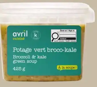 The price of Potage vert broco-kale can be found at the top of the page, together with the dates during which the offer is available. You can also check the price in the current flyer or on the Avril website. Promotional offers assure you of buying Avril products at the lowest price.