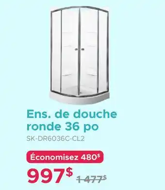 Bath Depot offers a wide collection of products, besides the Ens. de douche ronde 36 po. Keep an eye on the weekly flyer to find the best offers and promotions. Besides Ens. de douche ronde 36 po, you can also find the following offers: Collection Nilus Ens. de douche carrée 36 po, Reilyn Ens. de douche néo-angle 38 po & Ens. de douche en alcôve 32 x 60 po Collection Linus.