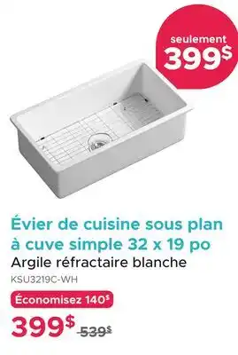 The Évier de cuisine sous plan à cuve simple 32 x 19 po Argile réfractaire blanche is available this week at Bath Depot with a valuable discount. On this page, you will find details about the current promotional price, the promotion terms, and any special discounts. You can also explore other related deals and promotions for Évier de cuisine sous plan à cuve simple 32 x 19 po Argile réfractaire blanche to make sure you get the best value.