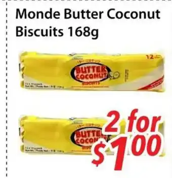 Monde Butter Coconut Biscuits promotion at Bestco Food Mart