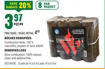 This promotion is available in various stores, view all products to get the cheapest BÛCHES DENSIFIÉES. If you'd like to find out whether this product has a bigger discount in another store, check the category 'DIY'. You may also find these offers interesting: PLANCHER DE BOIS Chêne ROUGE TAVERNE ne, TABLETTE DE MÉLAMINE & COMPTOIR JOINTÉ EN MÉLÈZE.
