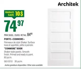 This promotion is available in various stores, view all products to get the cheapest PORTE CONMORE . If you'd like to find out whether this product has a bigger discount in another store, check the category 'DIY'. You may also find these offers interesting: PORTE D'ACIER POUR CABANO, PORTE DE CABANON ARTIC12 & BALAI ET PORTE-POUSSIÈRE OSKAR .