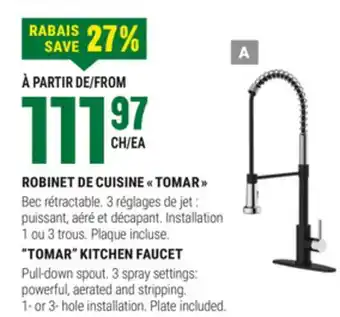 This ROBINET DE CUISINE TOMAR is now on sale at BMR. Check the current selection filled with great deals and discounts. Purchase ROBINET DE CUISINE TOMAR online via BMR website or get it at the best available price in person. Flyerdeals.ca gathers the best ROBINET DE CUISINE TOMAR promotions for you. Click on the bell icon to receive a free notification when this product is on sale again.ROBINET DE CUISINE TOMAR promotions for next week