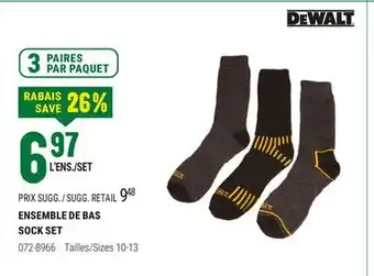 The Tailles DE BAS SOCK SET is available this week at BMR with a valuable discount. On this page, you will find details about the current promotional price, the promotion terms, and any special discounts. You can also explore other related deals and promotions for Tailles DE BAS SOCK SET to make sure you get the best value.