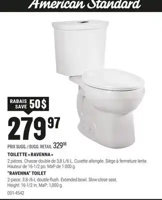 This TOILETTE RAVENNA is now on sale at BMR. Check the current selection filled with great deals and discounts. Purchase TOILETTE RAVENNA online via BMR website or get it at the best available price in person. Flyerdeals.ca gathers the best TOILETTE RAVENNA promotions for you. Click on the bell icon to receive a free notification when this product is on sale again.TOILETTE RAVENNA promotions for next week