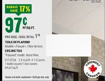 This promotion is available in various stores, view all products to get the cheapest TUILE DE PLAFOND. If you'd like to find out whether this product has a bigger discount in another store, check the category 'DIY'. You may also find these offers interesting: TUILE DE CÉRAMIQUE, TUILE DE PORCELAINE & TUILE DE PORCELAINE THE ROCK.