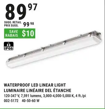 Many people prepare their shopping list in advance, using the latest deals and promotions. Flyerdeals.ca is among the first to share next week’s promotions, so you know whether to wait before making a purchase or buy right away at the best price. Our team updates all WATERPROOF LED LINEAR LIGHT promotions quickly, allowing you to plan with both this week’s and next week’s offers. Some promotions are only available during specific dates or online.Frequently asked questions about WATERPROOF LED LINEAR LIGHT