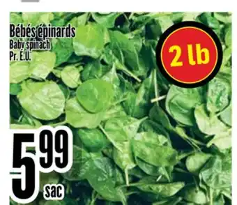 Bonanza offers a wide collection of products, besides the Baby spinach. Keep an eye on the weekly Bonanza flyer to find the best offers and promotions. Besides Baby spinach, you can also find the following offers: ORGANIC BABY SPINACH OR GOURMET MIX, Classic Salads Spring Mix or Baby Spinach & SPINACH.