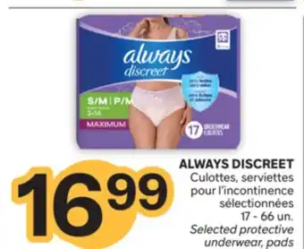 ALWAYS DISCREET Culottes, serviettes pour l'incontinence sélectionnées offer at Brunet