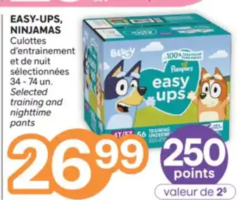 Brunet offers a wide collection of products, besides the EASY-UPS, NINJAMAS Culottes d'entrainement et de nuit sélectionnées. Keep an eye on the weekly Brunet flyer to find the best offers and promotions. Besides EASY-UPS, NINJAMAS Culottes d'entrainement et de nuit sélectionnées, you can also find the following offers: Couches et culottes d'entraînement sélectionnées SWADDLERS, EASY UPS, CULOTTES D'ENTRAÎNEMENT | EASY UPS PAMPERS OU NINJAMAS, 34-74 un & PAMPERS Easy Ups or Ninjamas.
