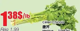 This promotion is available in various stores, view all products to get the cheapest Céleri Chinois. If you'd like to find out whether this product has a bigger discount in another store, check the category 'Grocery'. You may also find these offers interesting: Céleri Chinoise, Céleri Chinoise & ÉPINARD CHINOIS.