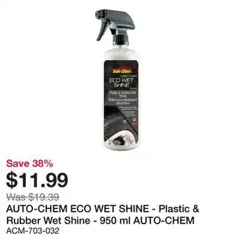 Current AUTO-CHEM ECO WET SHINE - Plastic & Rubber Wet Shine deal at Bumper to Bumper from 1-03 until 31-03.