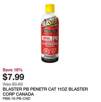This BLASTER PB PENETR CAT 11OZ is now on sale at Bumper to Bumper. Check the current selection filled with great deals and discounts. Purchase BLASTER PB PENETR CAT 11OZ online via Bumper to Bumper website or get it at the best available price in person. Flyerdeals.ca gathers the best BLASTER PB PENETR CAT 11OZ promotions for you. Click on the bell icon to receive a free notification when this product is on sale again.BLASTER PB PENETR CAT 11OZ promotions for next week