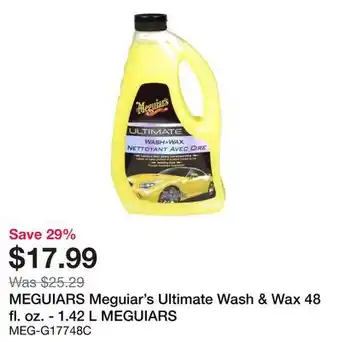 The price of MEGUIARS Meguiar's Ultimate Wash & Wax 48 fl. oz can be found at the top of the page, together with the dates during which the offer is available. You can also check the price in the current flyer or on the Bumper to Bumper website. Promotional offers assure you of buying Bumper to Bumper products at the lowest price.