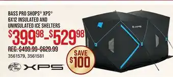 This BASS PRO SHOPS XPS 6X12 INSULATED AND UNINSULATED ICE SHELTERS is now on sale at Cabela's. Check the current selection filled with great deals and discounts. Purchase BASS PRO SHOPS XPS 6X12 INSULATED AND UNINSULATED ICE SHELTERS online via Cabela's website or get it at the best available price in person. Flyerdeals.ca gathers the best BASS PRO SHOPS XPS 6X12 INSULATED AND UNINSULATED ICE SHELTERS promotions for you. Click on the bell icon to receive a free notification when this product is on sale again.BASS PRO SHOPS XPS 6X12 INSULATED AND UNINSULATED ICE SHELTERS promotions for next week