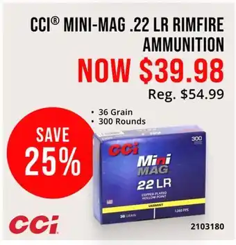 CCI MINI-MAG .22 LR RIMFIRE AMMUNITION promotion at Cabela's