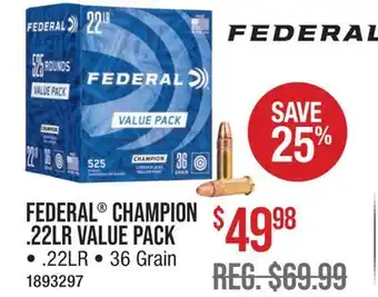 FEDERAL CHAMPION .22LR VALUE PACK discount at Cabela's