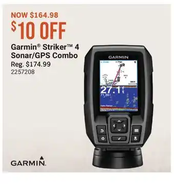 The price of Garmin Striker 4 Sonar/GPS Combo can be found at the top of the page, together with the dates during which the offer is available. You can also check the price in the current Cabela's flyer or on the Cabela's website. Promotional offers assure you of buying Cabela's products at the lowest price.