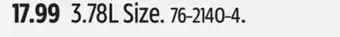 The 3.78L Size is available this week at Canadian Tire with a valuable discount. On this page, you will find details about the current promotional price, the promotion terms, and any special discounts. You can also explore other related deals and promotions for 3.78L Size to make sure you get the best value.