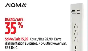 Now on sale at Canadian Tire: 3-Outlet Power Bar ✅ Valid from 26-02 to 4-03.