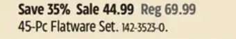 This promotion is available in various stores, view all products to get the cheapest 45-Pc Flatware Set. If you'd like to find out whether this product has a bigger discount in another store, check the category 'DIY'. You may also find these offers interesting: Selected 20-Pc Flatware Sets, PADERNO Selected 20-Pc Flatware Sets & MASTER Chef Selected 20-Pc Flatware Sets.