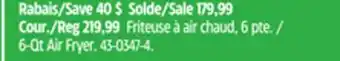 This 6-Qt Air Fryer is currently on sale at Canadian Tire. All details regarding the current price, offer conditions, and validity period can be found on this page. You can also explore other similar deals and promotions related to 6-Qt Air Fryer to make the most cost-effective choice.