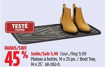 Canadian Tire offers a wide collection of products, besides the Boot Tray. Keep an eye on the weekly Canadian Tire flyer to find the best offers and promotions. Besides Boot Tray, you can also find the following offers: Boot Tray, Boot Tray, 14 x 25˝ & Selected Mats or Boot Tray.