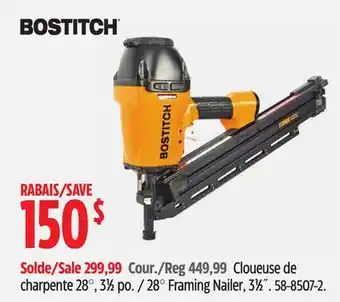 Bostitch 28° Framing Nailer, 31⁄2˝ discount at Canadian Tire