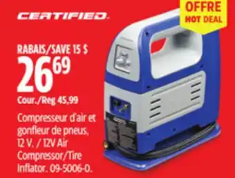 The price of Certified 12V Air Compressor/Tire Inflator can be found at the top of the page, together with the dates during which the offer is available. You can also check the price in the current Canadian Tire flyer or on the Canadian Tire website. Promotional offers assure you of buying Canadian Tire products at the lowest price.