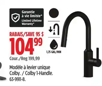 The price of Colby 1-Handle can be found at the top of the page, together with the dates during which the offer is available. You can also check the price in the current Canadian Tire flyer or on the Canadian Tire website. Promotional offers assure you of buying Canadian Tire products at the lowest price.