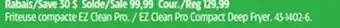 This EZ Clean Pro Compact Deep Fryer is currently on sale at Canadian Tire. All details regarding the current price, offer conditions, and validity period can be found on this page. You can also explore other similar deals and promotions related to EZ Clean Pro Compact Deep Fryer to make the most cost-effective choice.
