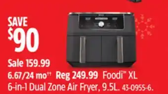 Foodi XL 6-in-1 Dual Zone Air Fryer, 9.5L promotion at Canadian Tire