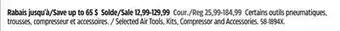 This Mastercraft Selected Air Tools, Kits, Compressor and Accessories is currently on sale at Canadian Tire. All details regarding the current price, offer conditions, and validity period can be found on this page. You can also explore other similar deals and promotions related to Mastercraft Selected Air Tools, Kits, Compressor and Accessories to make the most cost-effective choice.