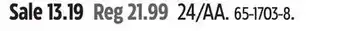 The price of NOMA 24/AA can be found at the top of the page, together with the dates during which the offer is available. You can also check the price in the current Canadian Tire flyer or on the Canadian Tire website. Promotional offers assure you of buying Canadian Tire products at the lowest price.