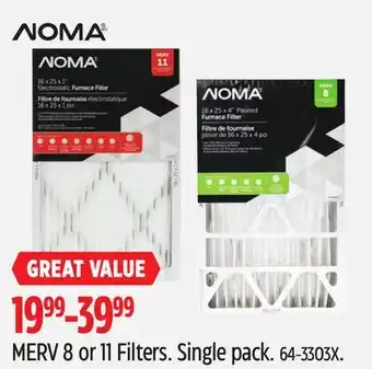The price of Noma MERV 8 or 11 Filters can be found at the top of the page, together with the dates during which the offer is available. You can also check the price in the current Canadian Tire flyer or on the Canadian Tire website. Promotional offers assure you of buying Canadian Tire products at the lowest price.