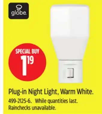 Canadian Tire offers a wide collection of products, besides the Plug-in Night Light, Warm White. Keep an eye on the weekly Canadian Tire flyer to find the best offers and promotions. Besides Plug-in Night Light, Warm White, you can also find the following offers: Globe Plug-in Night Light, Warm White, A19 60W LED Light Bulbs Warm White or Daylight & Smart Plug White.