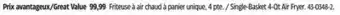The price of Single-Basket 4-Qt Air Fryer can be found at the top of the page, together with the dates during which the offer is available. You can also check the price in the current Canadian Tire flyer or on the Canadian Tire website. Promotional offers assure you of buying Canadian Tire products at the lowest price.