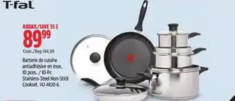 T-fal 10-Pc Stainless-Steel Non-Stick Cookset promotion at Canadian Tire