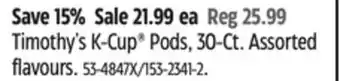 Timothy's K-Cup Pods, 30-Ct promotion at Canadian Tire