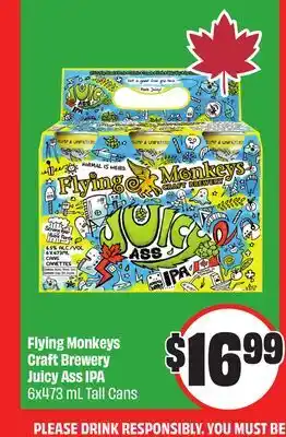 Now on sale at Chalo FreshCo: Flying Monkeys Craft Brewery Juicy Ass IPA 6x473 mL Tall Cans ✅ Valid from 18-12 to 24-12.