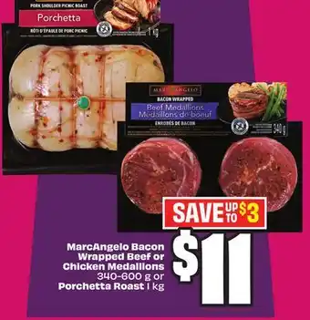 MarcAngelo Bacon Wrapped Beef or Chicken Medallions 340-600 g or Porchetta Roast 1 kg promotion at Chalo FreshCo