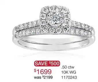 The price of 10K White Gold 0.50CTW Bridal Set can be found at the top of the page, together with the dates during which the offer is available. You can also check the price in the current flyer or on the Charm Diamond website. Promotional offers assure you of buying Charm Diamond products at the lowest price.