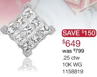 This promotion is available in various stores, view all products to get the cheapest 25 ctw 10K WG. If you'd like to find out whether this product has a bigger discount in another store, check the category 'Jewellery'. You may also find these offers interesting: 50 ctw 10K WG, 13 ctw 10K WG & 95 ctw 10K WG.