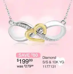 Sterling Silver 10K Yellow Gold 0.03CTW Diamond Heart Infinity Pendant